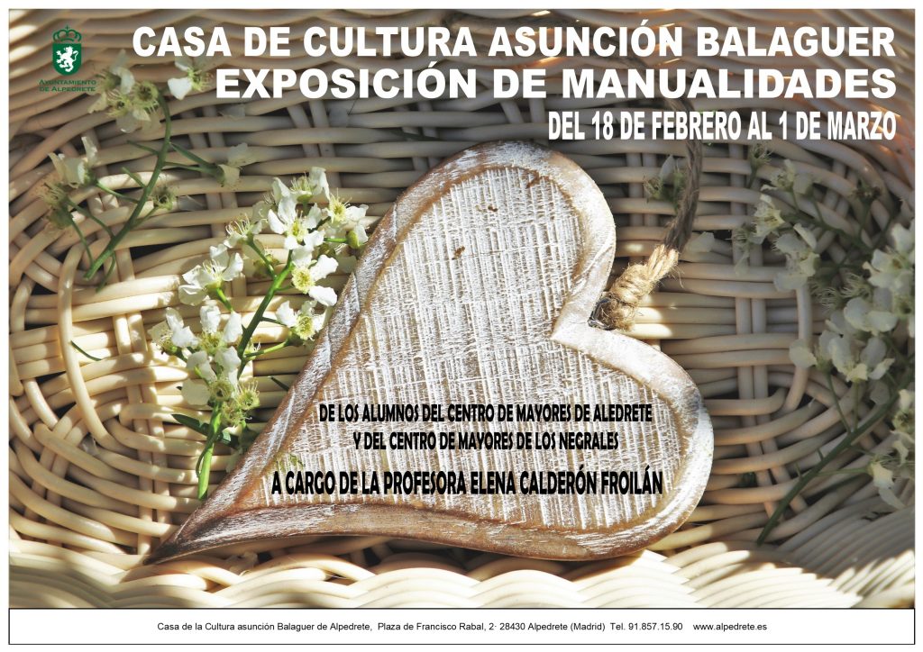 En esta exposición podremos ver platos decorados, cestas, cajas con diferentes formas, y todas aquellas manualidades que realizaron durante el año pasado las alumnas de los cursos para mayores de nuestro municipio que se imparten tanto en el Centro de Mayores de Alpedrete, como en el Centro de Mayores de Los Negrales. Los visitantes también podrán apreciar una pequeña muestra de los trabajos de las alumnas del taller de pacthwork y corte y confección que dirige Raquel Velázquez.